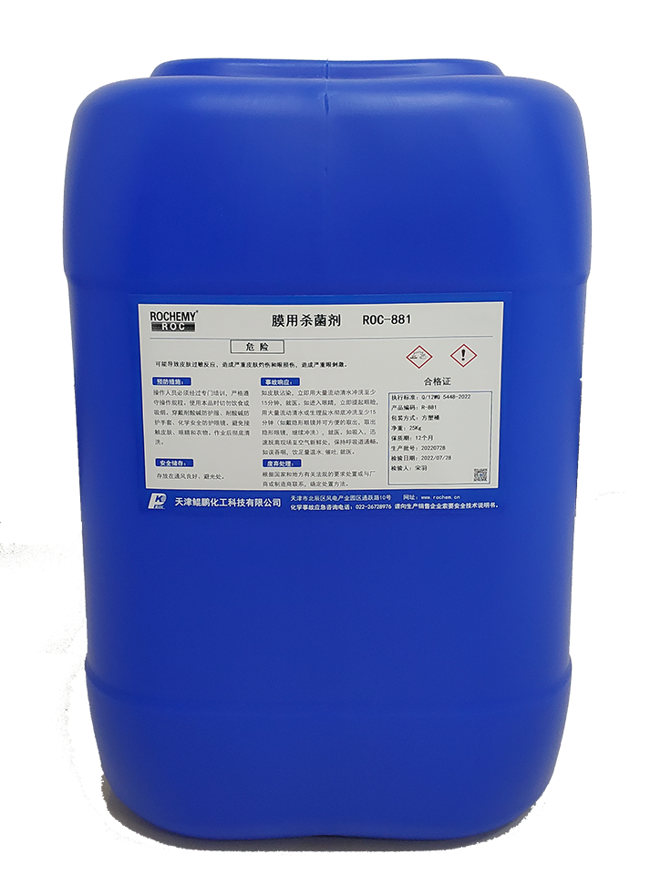 膜用杀菌剂对微生物细胞具有极强的穿透能力,并对微生物的细胞组织产生分解破坏作用;对反渗透设备中细菌、真菌、藻类等微生物有极强的杀灭和抑制作用。