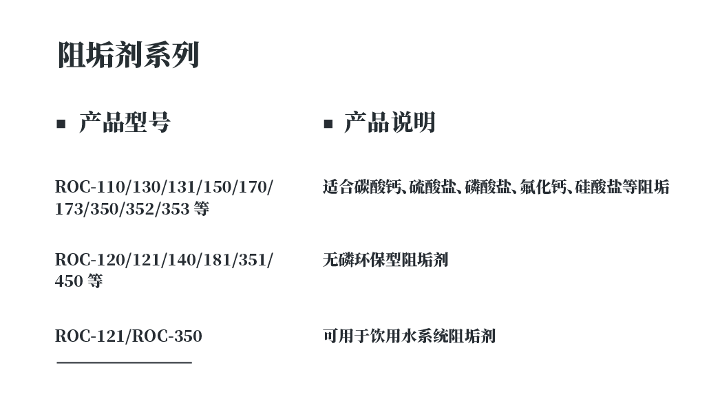 膜用阻垢剂主要控制碳酸盐垢、硫酸盐垢、磷酸盐垢、氟化钙垢以及硅酸盐垢等。